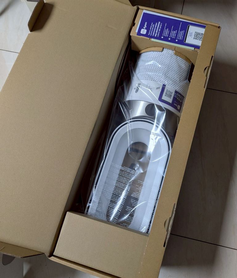 小提醒: 箱子上寫著 “Purifier Hot+Cool”,這通常對應 Dyson 的 HP 系列(如 HP07 或 HP09/HP10)。如果是 HP09 等級以上的機型,還會額外具備「分解甲醛」的功能。