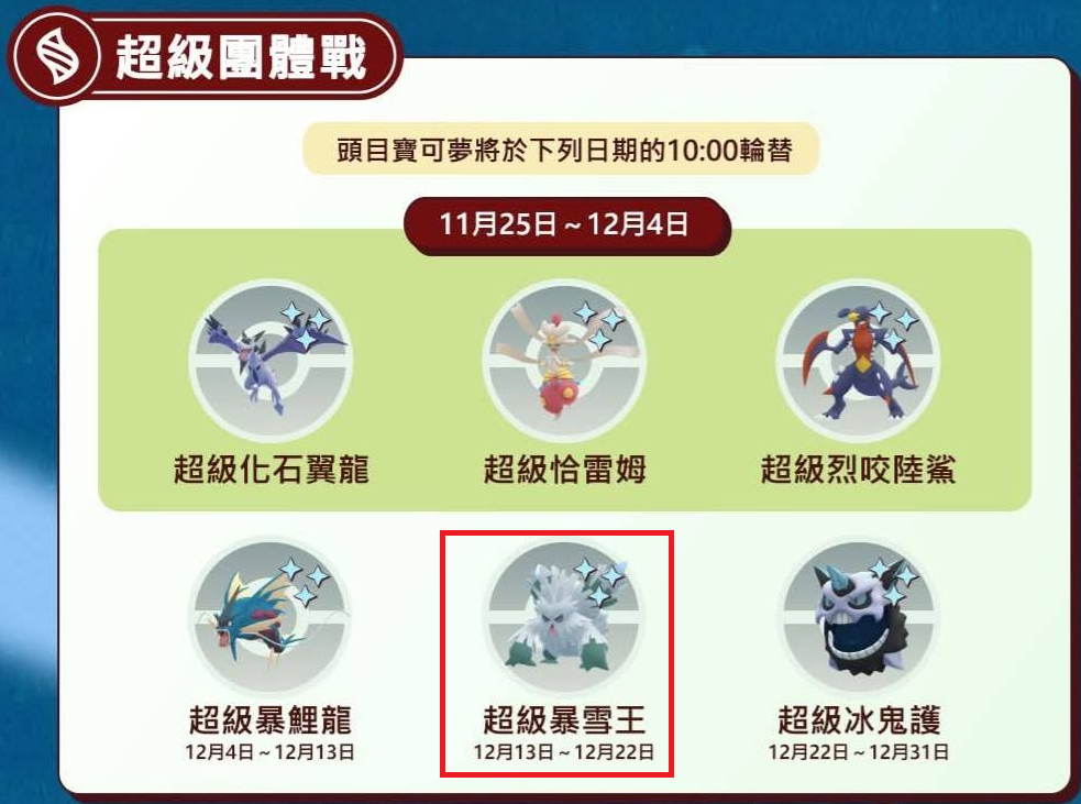2025/12/04-12/09 更新 BOSS 最新GO團體戰頭目CP表更新 1星-6星