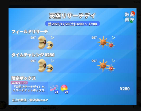12/20 天空調查日活動特殊調查田野任務 Pokemon GO 2025