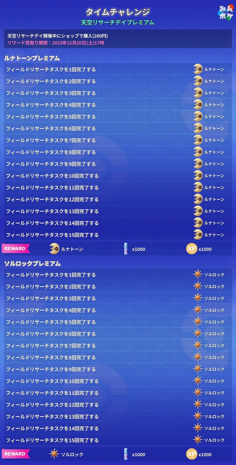 最終大獎 (REWARDS): 太陽岩 遇見機會 1,000 星碎 (Stardust) 1,000 經驗值 (XP)