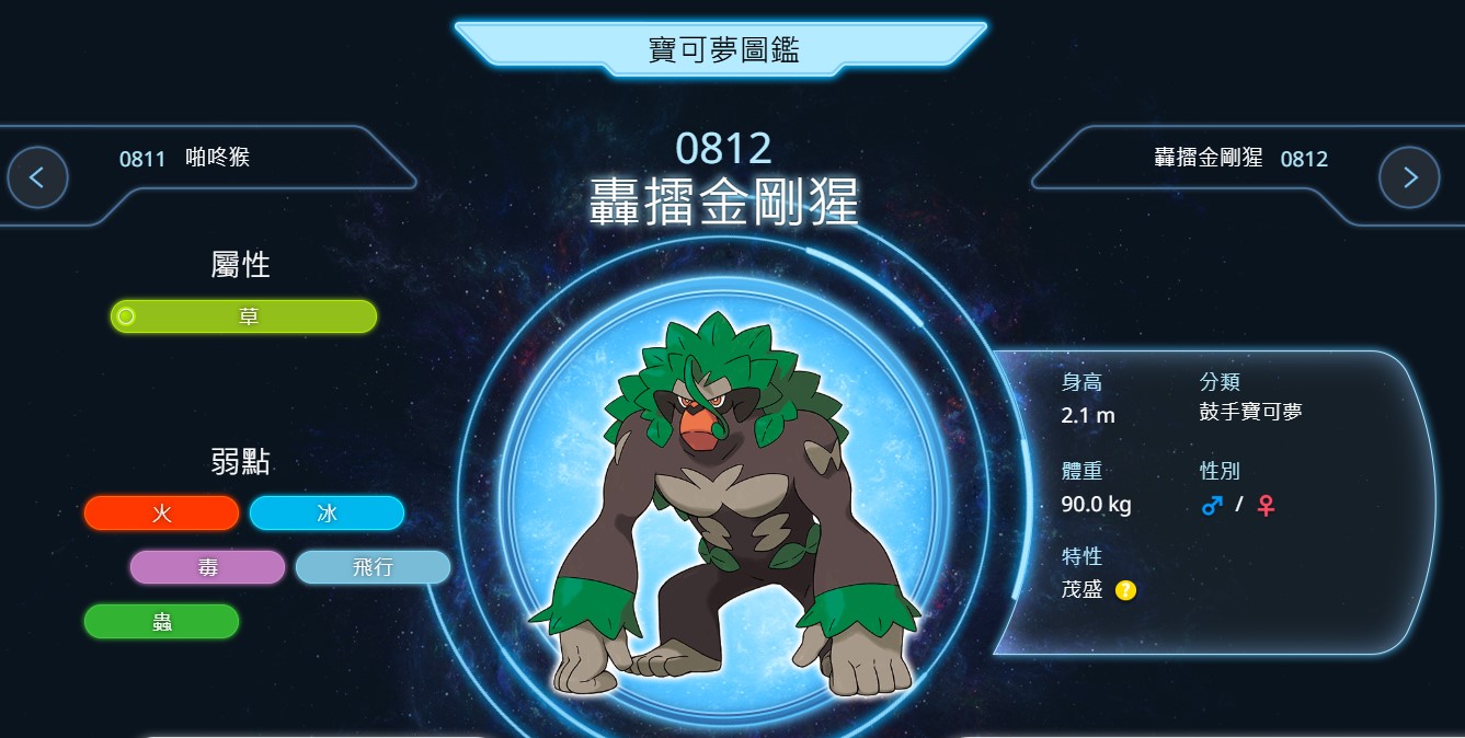 極巨化 (Gigantamax): 如果你有能夠「超極巨化」的轟擂金剛猩,牠是目前草系極巨戰的頂級打手。