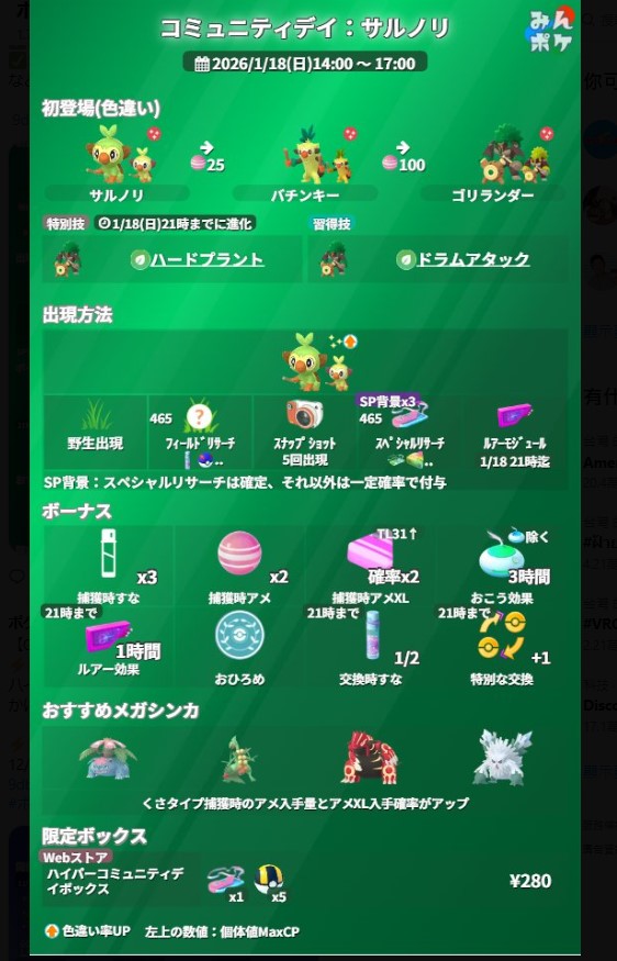 1/18 敲音猴社群日 特殊招式 限時調查任務 Pokemon GO 2026