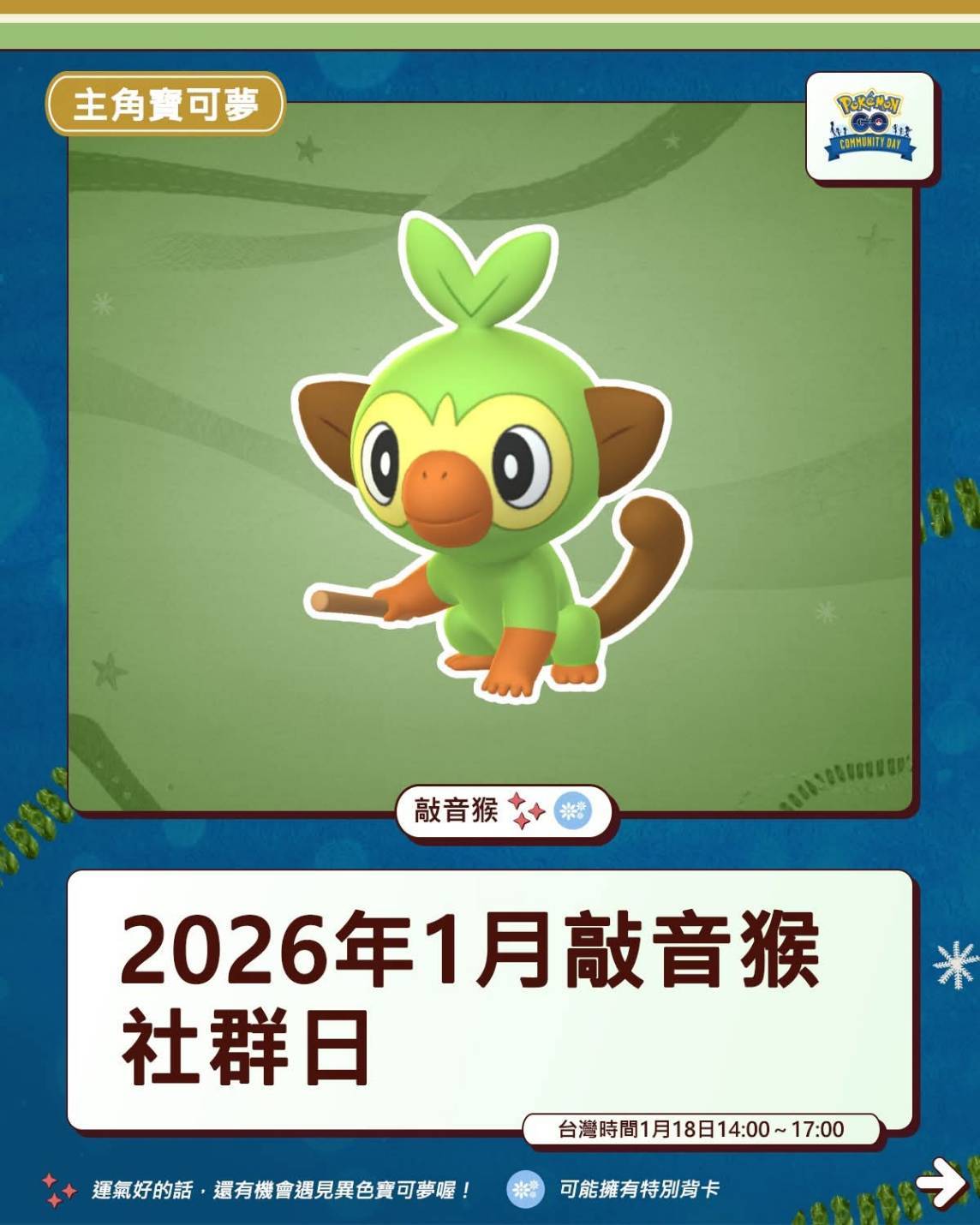 1/18 敲音猴社群日 特殊招式 限時調查任務 Pokemon GO 2026