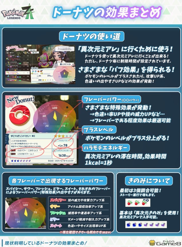 來自日本攻略網站 Game8 製作的《寶可夢傳說 Z-A》甜甜圈效果懶人包。
