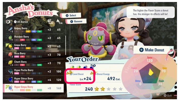 不要混搭普通樹果: 製作甜甜圈時,只要摻入一顆「普通樹果」,整體的飽足能量就會被拉低,導致你在異次元的停留時間大幅縮短。