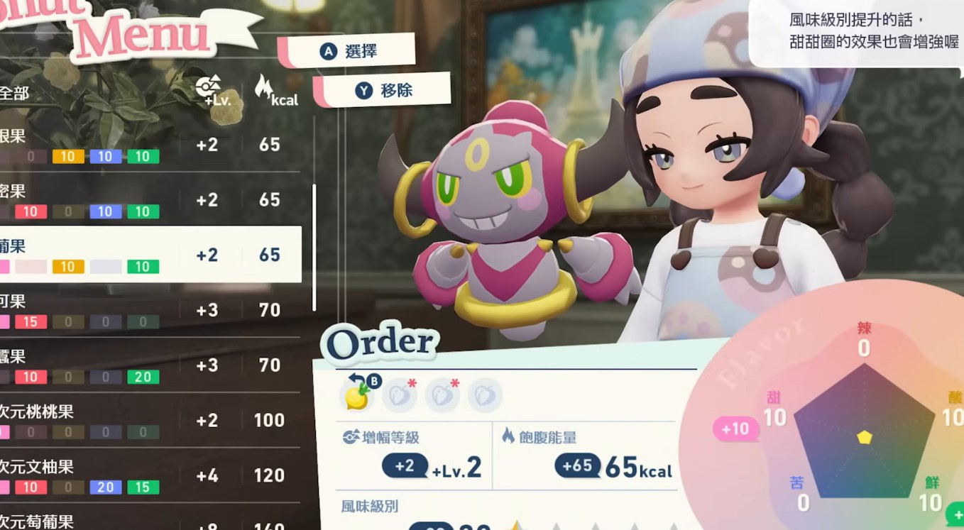 範例: 使用「異次元桃桃果」(甜)+「異次元柿仔果」(甜),會比隨意混合產出更高的「風味分數」,進而獲得額外的能量加成倍率。