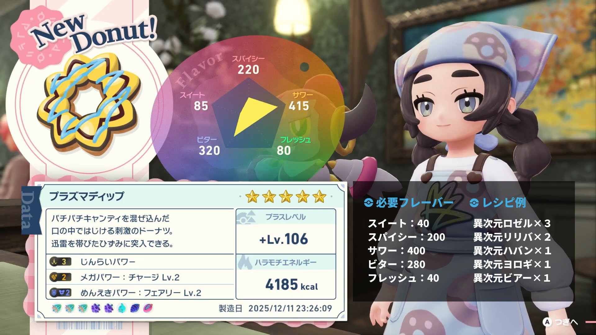 結果: 吃完糖果後會觸發劇情,並解鎖一個新的料理食譜 —— 「等離子閃電甜甜圈」 (Plasma Donut)。