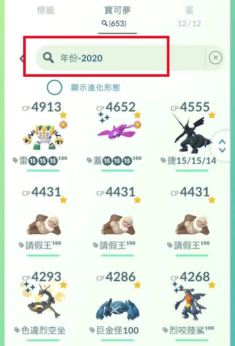 指令 year-2020 (測試無效) 、年份2020(測試OK):篩選出 2020 年、2019 年…及更早的寶可夢。