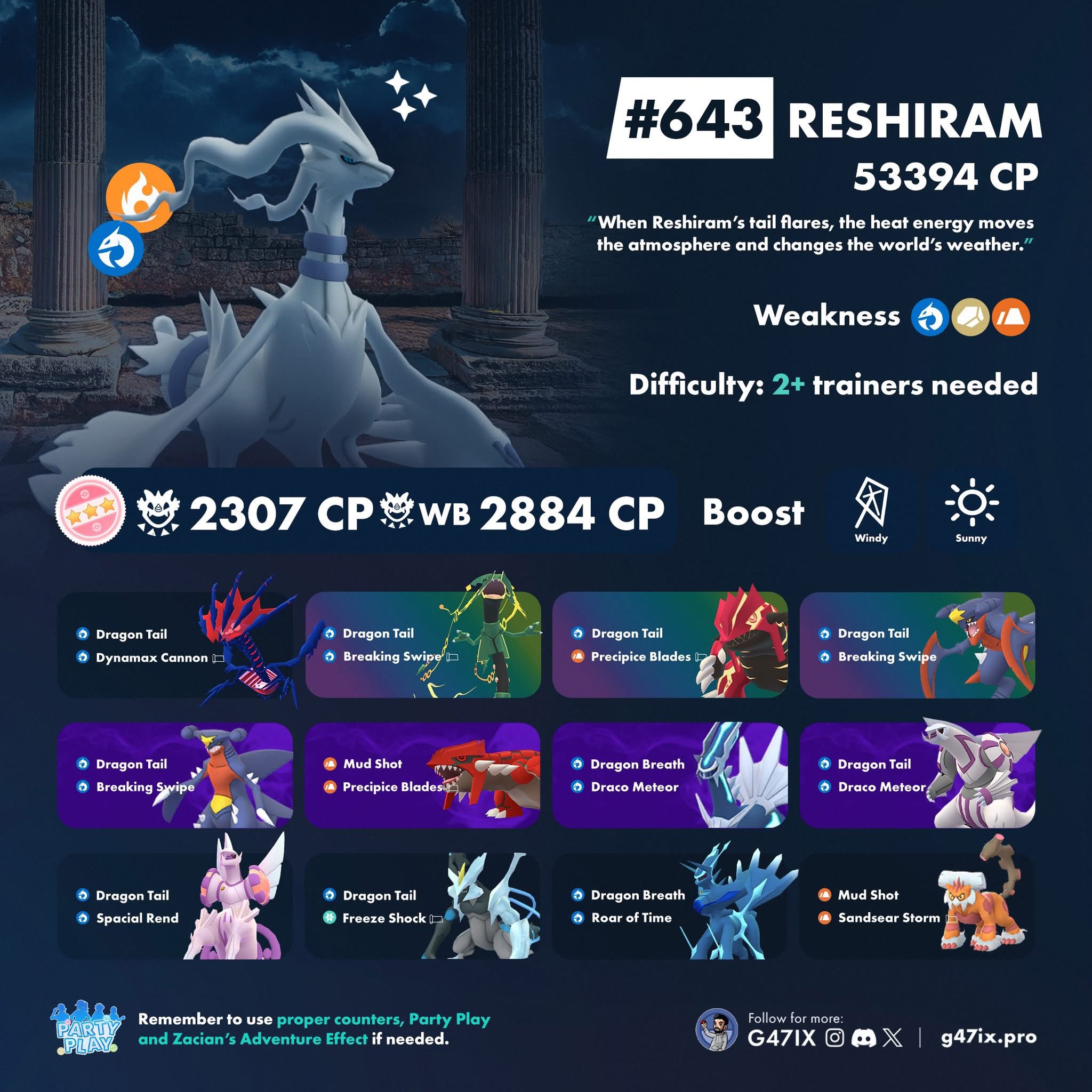 作用: 當對方的妖精系被消耗,或者對方的鋼系核心出現時,萊希拉姆可以進場清場。火系抗性讓牠在面對其他火系(如鳳王)時也有一戰之力(靠尖石攻擊)。