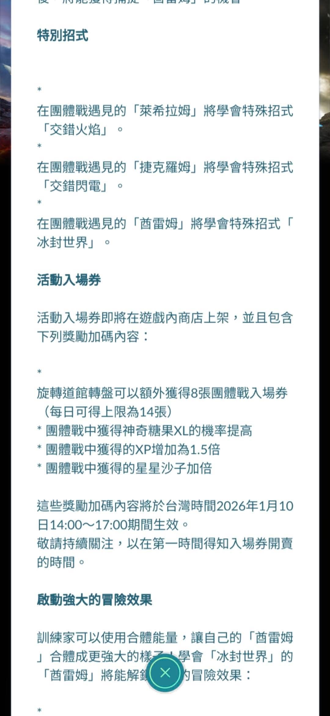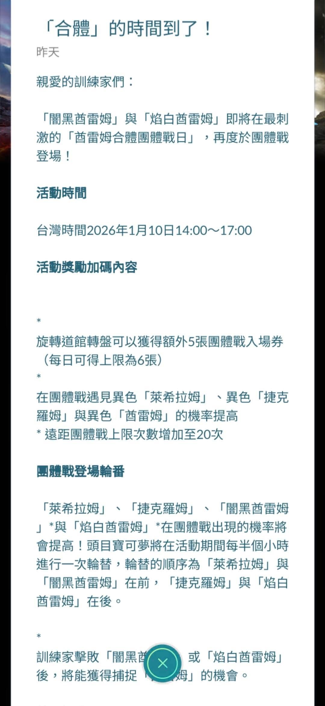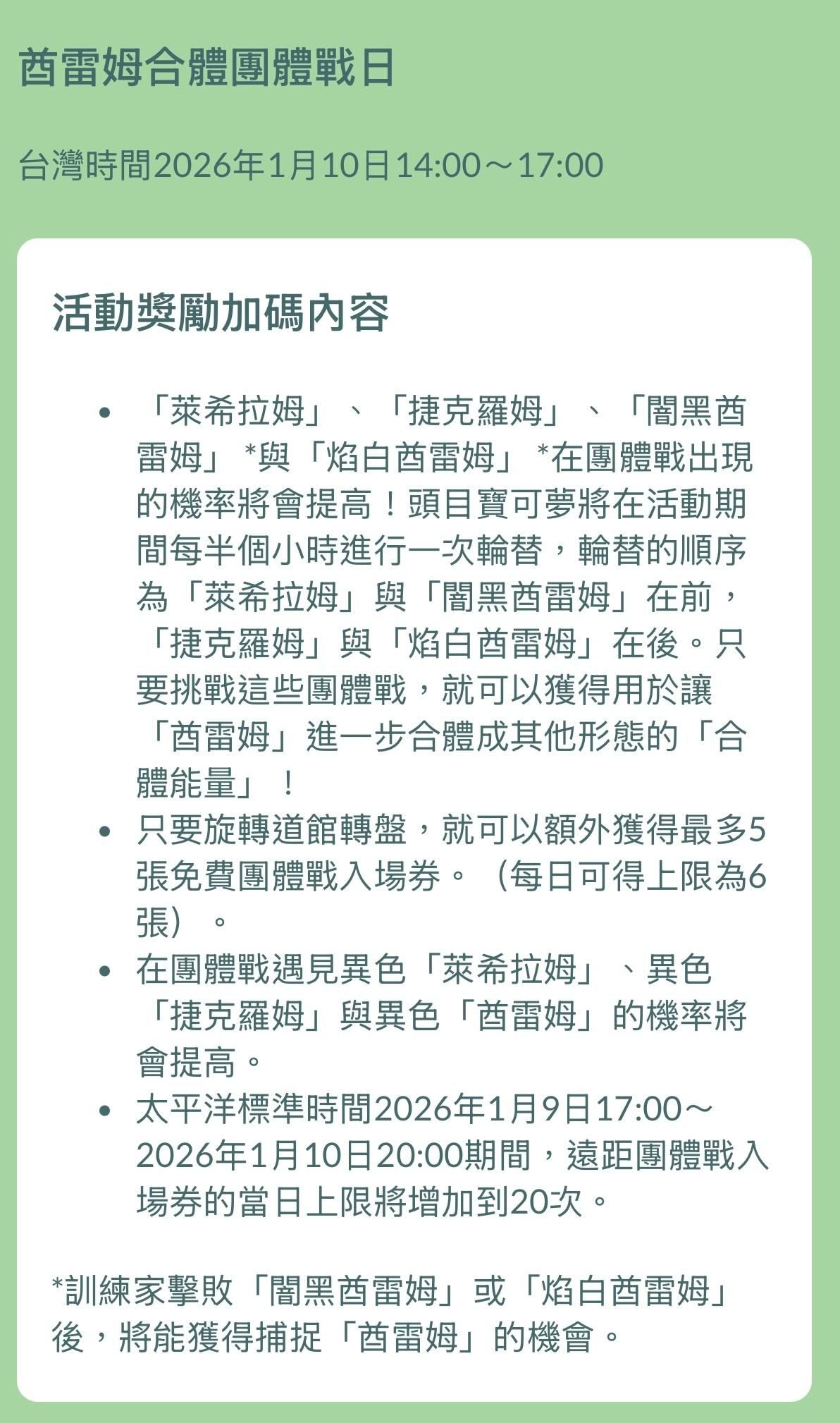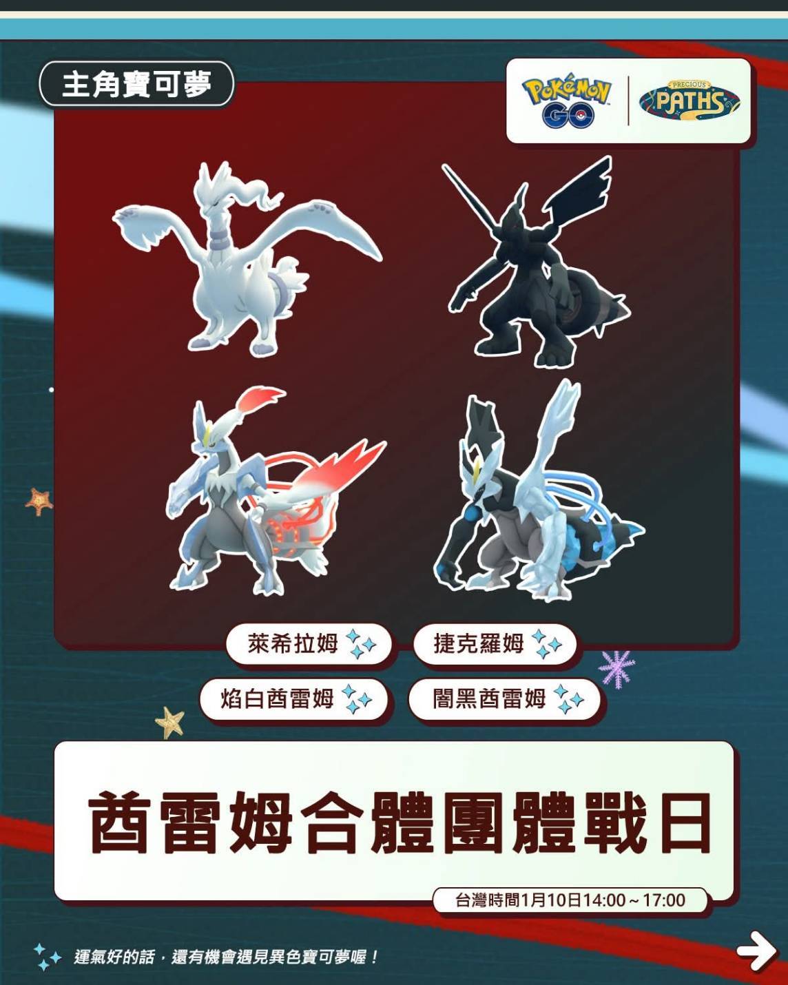 01/10 酋雷姆合體團體戰日 特別招式 活動入場券加碼獎勵 Pokemon GO 2026