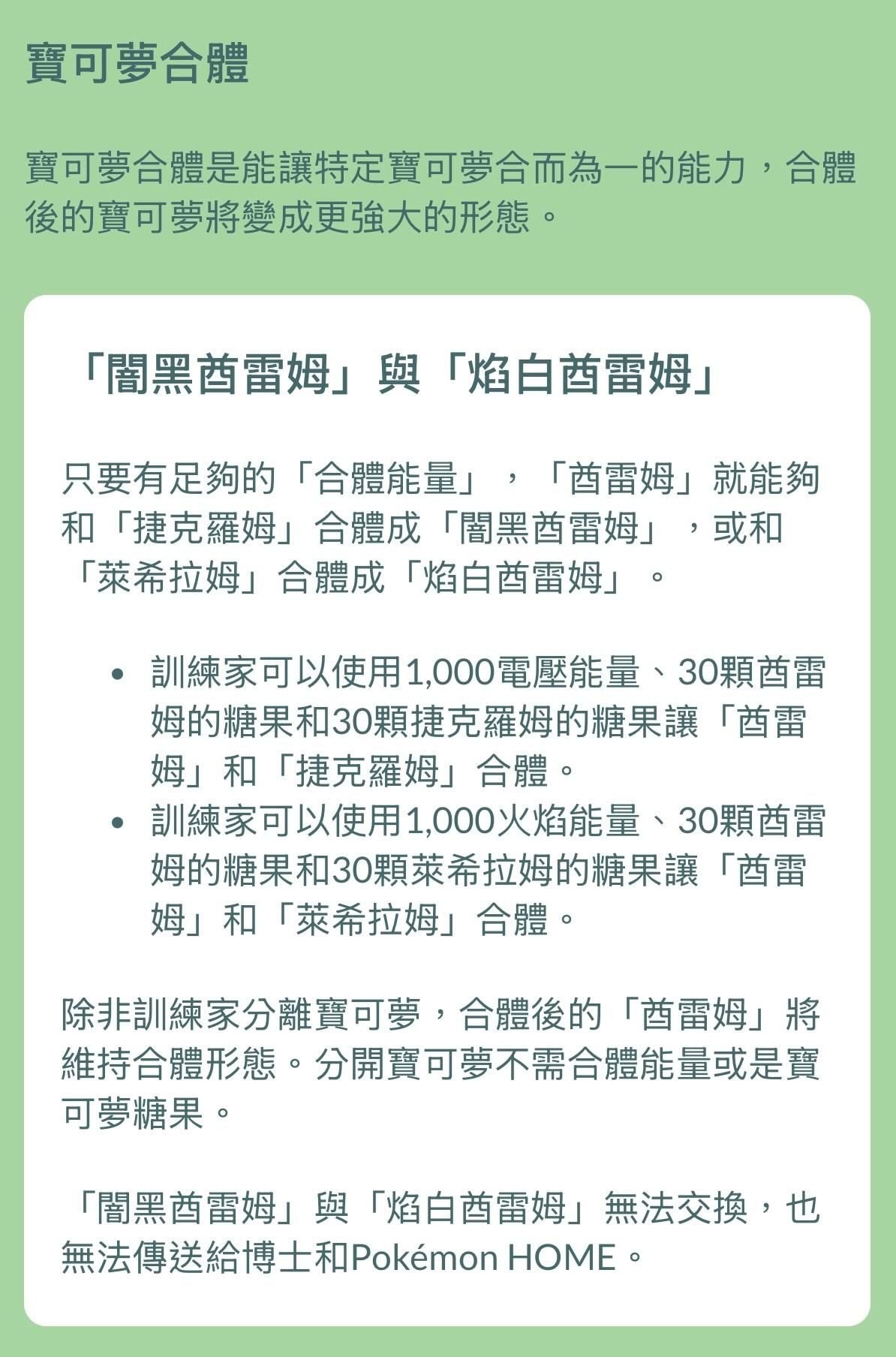 寶可夢合體是能讓特定寶可夢合而為一的能力,合體後的寶可夢將變成更強大的形態。