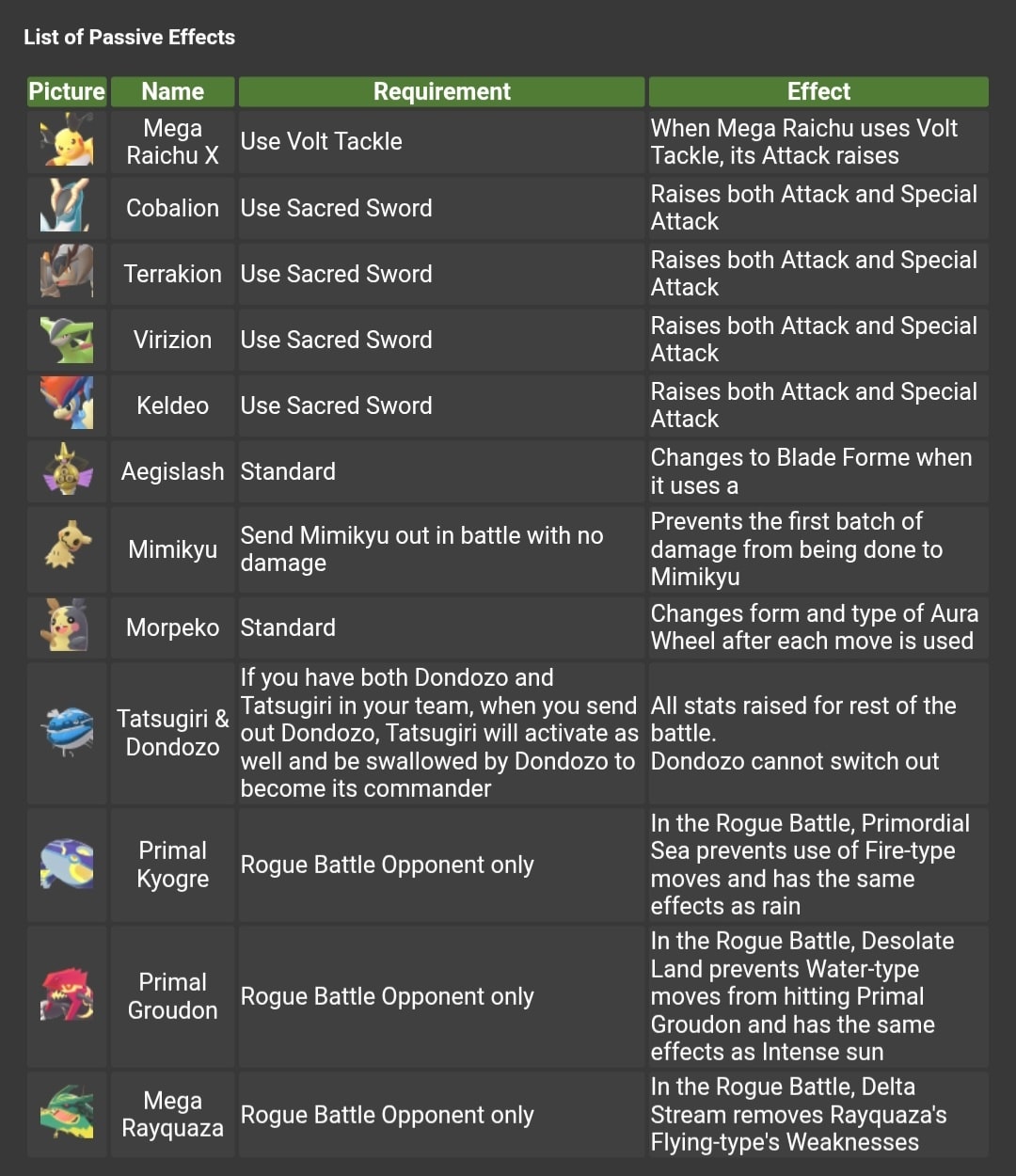 | 寶可夢圖片 | 名稱 | 觸發條件(Requirement) | 效果說明(Effect) |