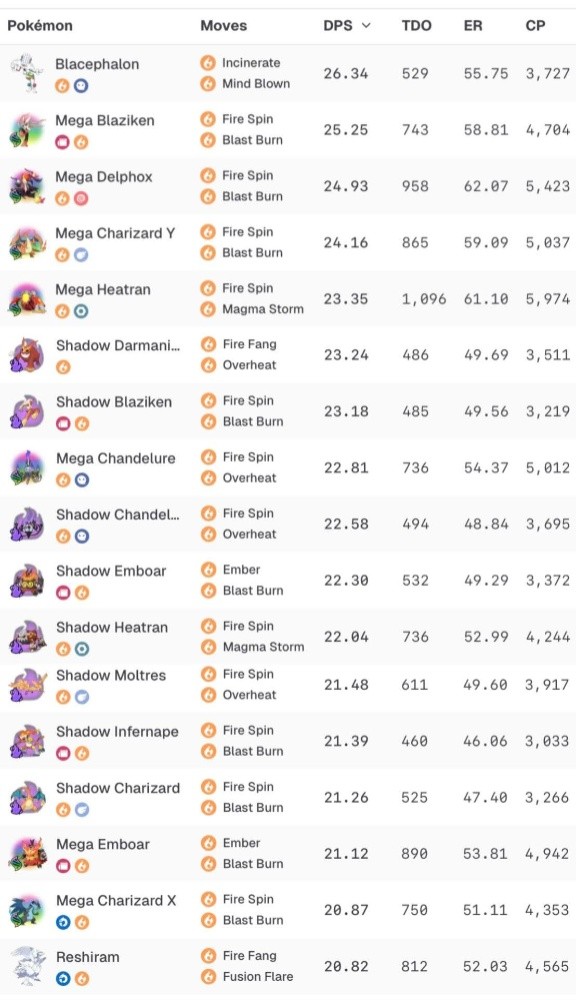 | 暗影噴火龍 | 火焰旋渦 / 爆炸烈焰 | 21.26 | 525 | 47.40 | 3,266 |