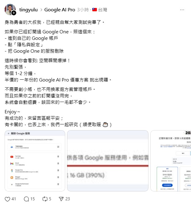 Google One AI Premium (AI Pro) 的年終優惠確實非常強勁!