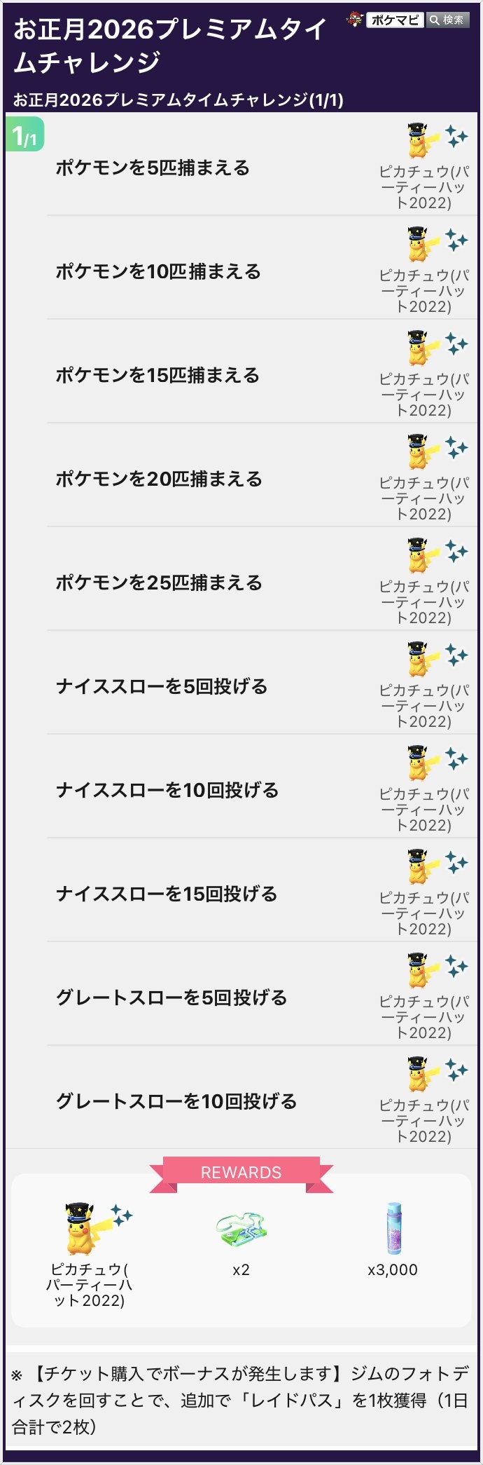 任務內容 (共 1/1 階段): 此調查主要獎勵皆為「戴著派對禮帽的皮卡丘」。