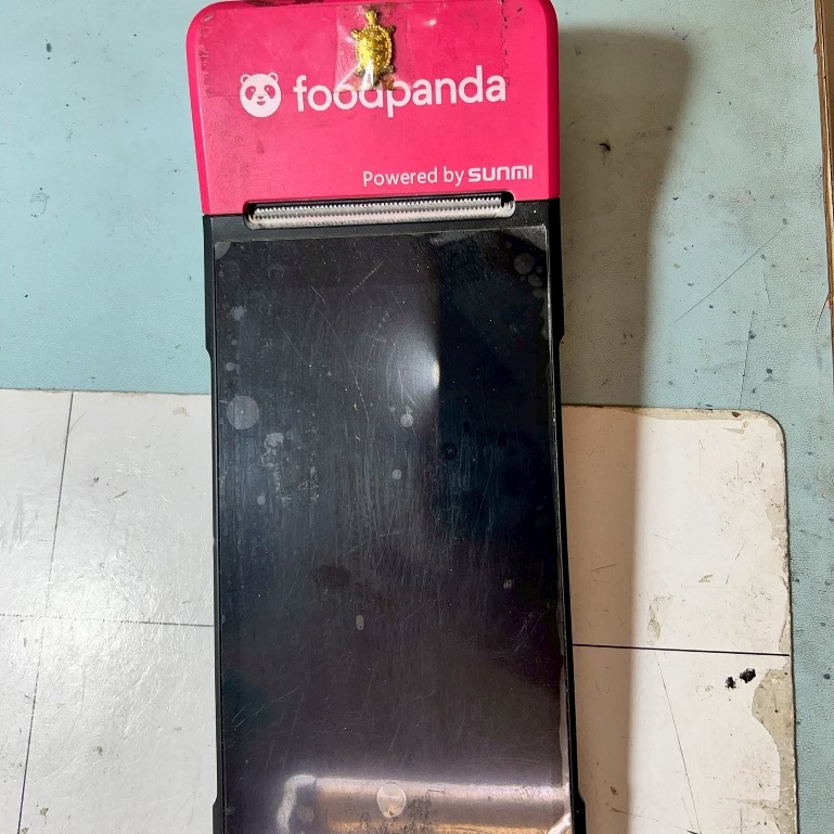 雖然這台機器是由上海商米科技(SUNMI)製造的通用型 POS 機,但在台灣,因為 foodpanda 大量採用此型號作為標準配備發放給店家,用於接收訂單和列印收據,因此被店家和外送員習慣性地稱為「熊貓機」。 (註:Uber Eats 早期多用平板,後來也開始有類似的一體機,但「熊貓機」這個綽號已深植人心)