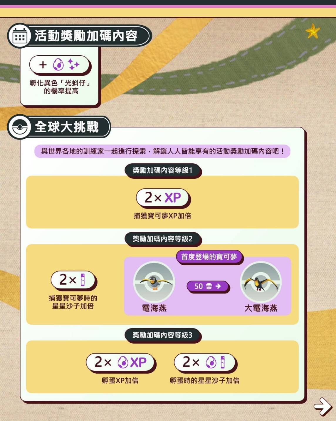 「全球大挑戰」將於「電光高瓦數」活動期間展開!與世界各地的訓練家攜手進行探索,並解鎖人人皆能享有的獎勵加碼內容吧!