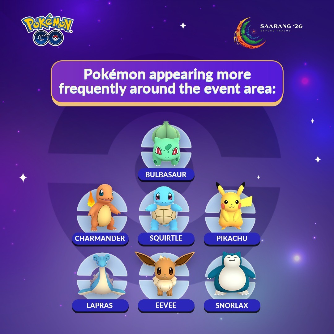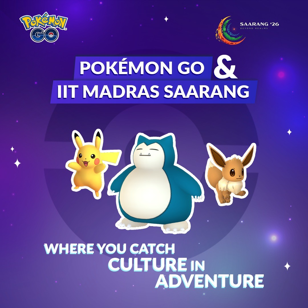 Get ready, Trainers! Pokémon GO will be live at IIT Madras Saarang from 10–12 January 2026.