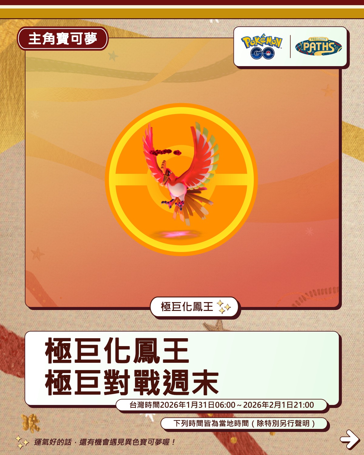 請注意限時調查有時限。訓練家必須在台灣時間2026年2月1日21:00前完成本次免費限時調查相關課題並領取獎勵。