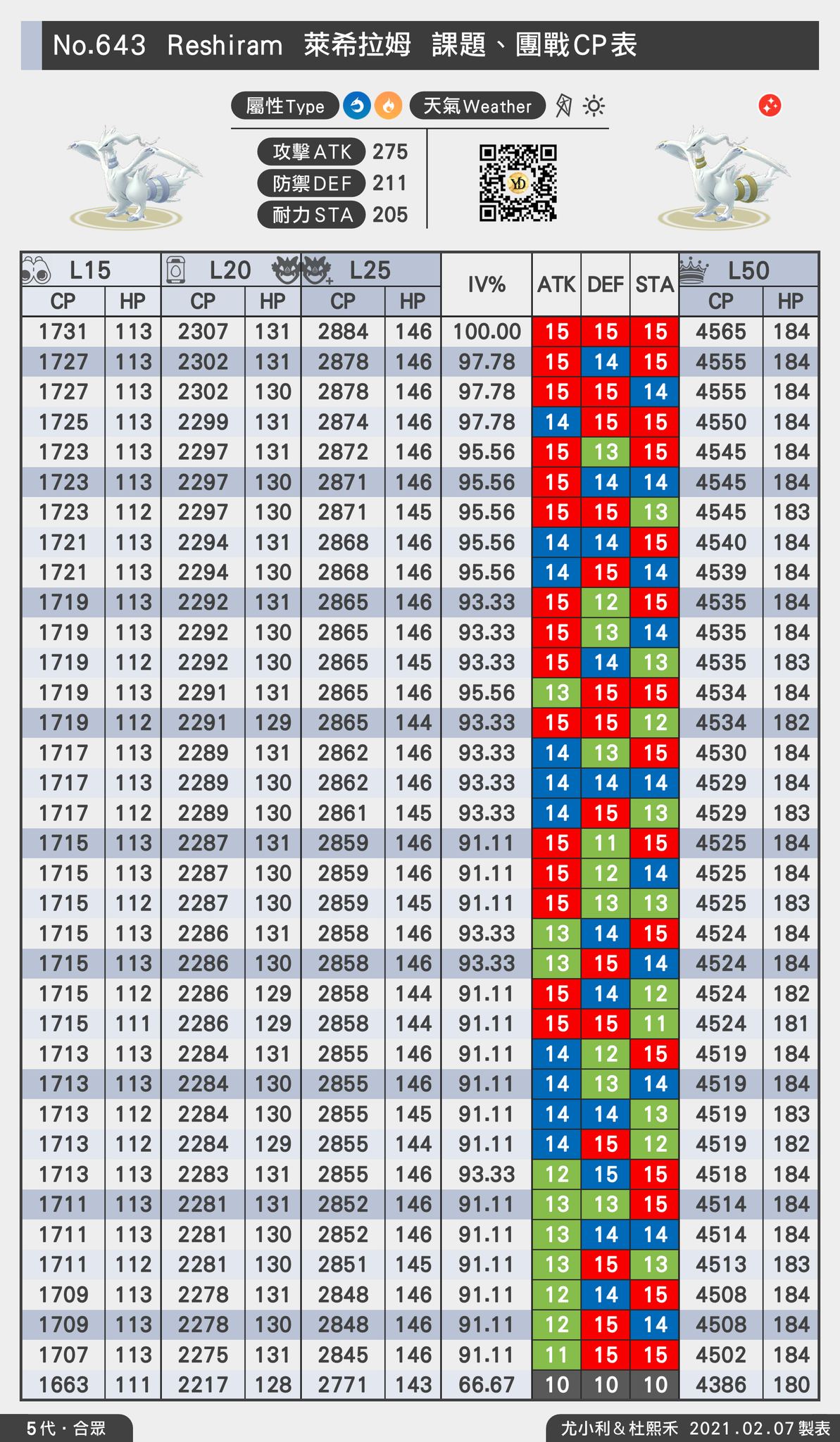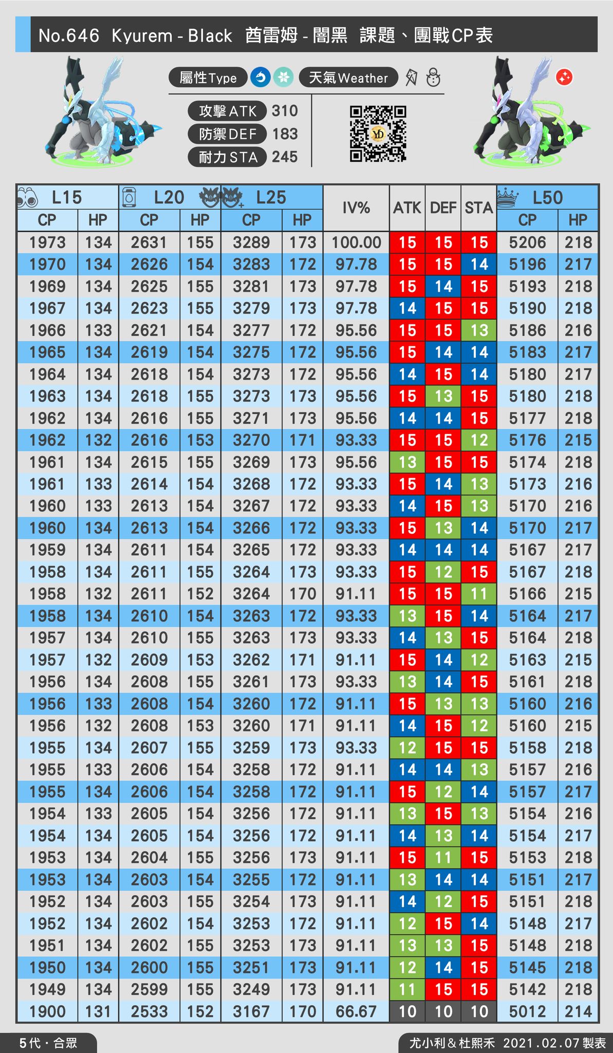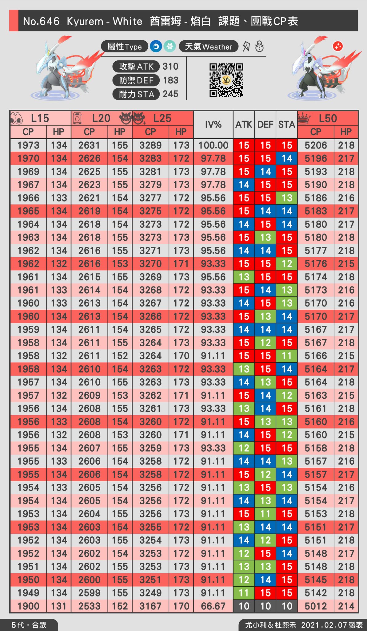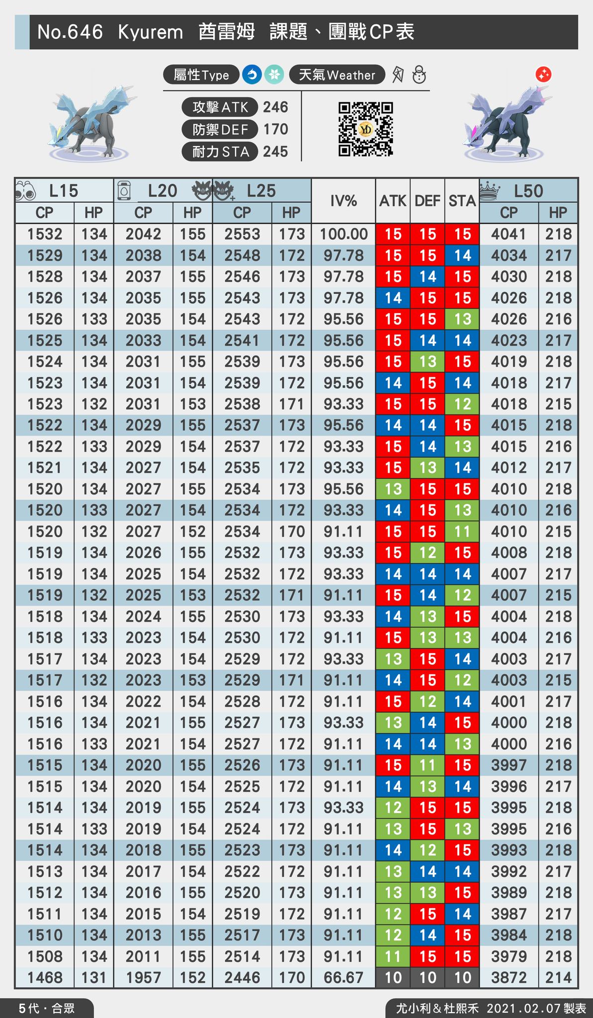 酋雷姆、焰白酋雷姆、捷克羅姆、萊希拉姆 HP/CP IV 100 表下載 Pokemon GO 2026