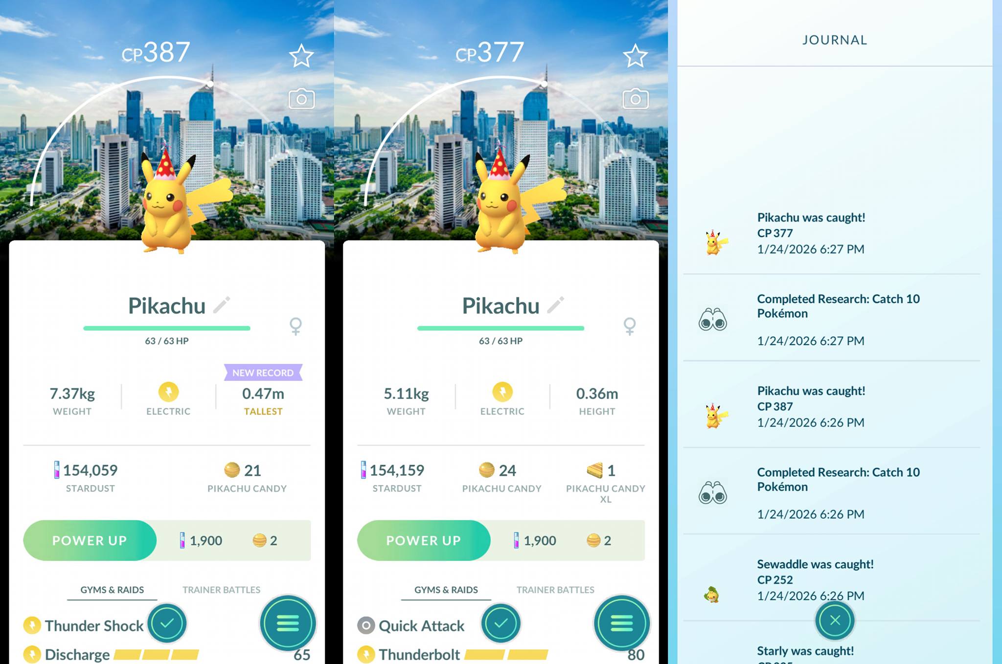 Complete the Timed Research to earn XP, additional encounters with Pokémon and a chance to encounter the Pikachu wearing a party hat with Jakarta Location Background.