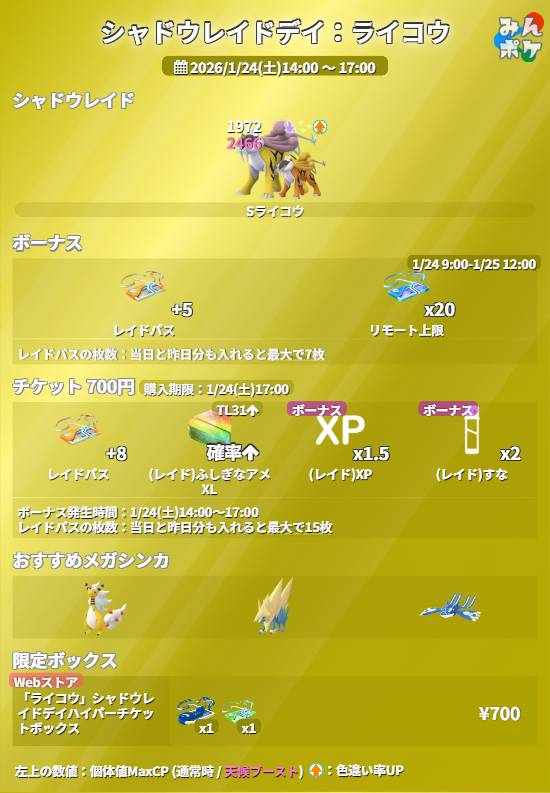 01/24 暗影雷公團體戰日 Pokemon GO 2026