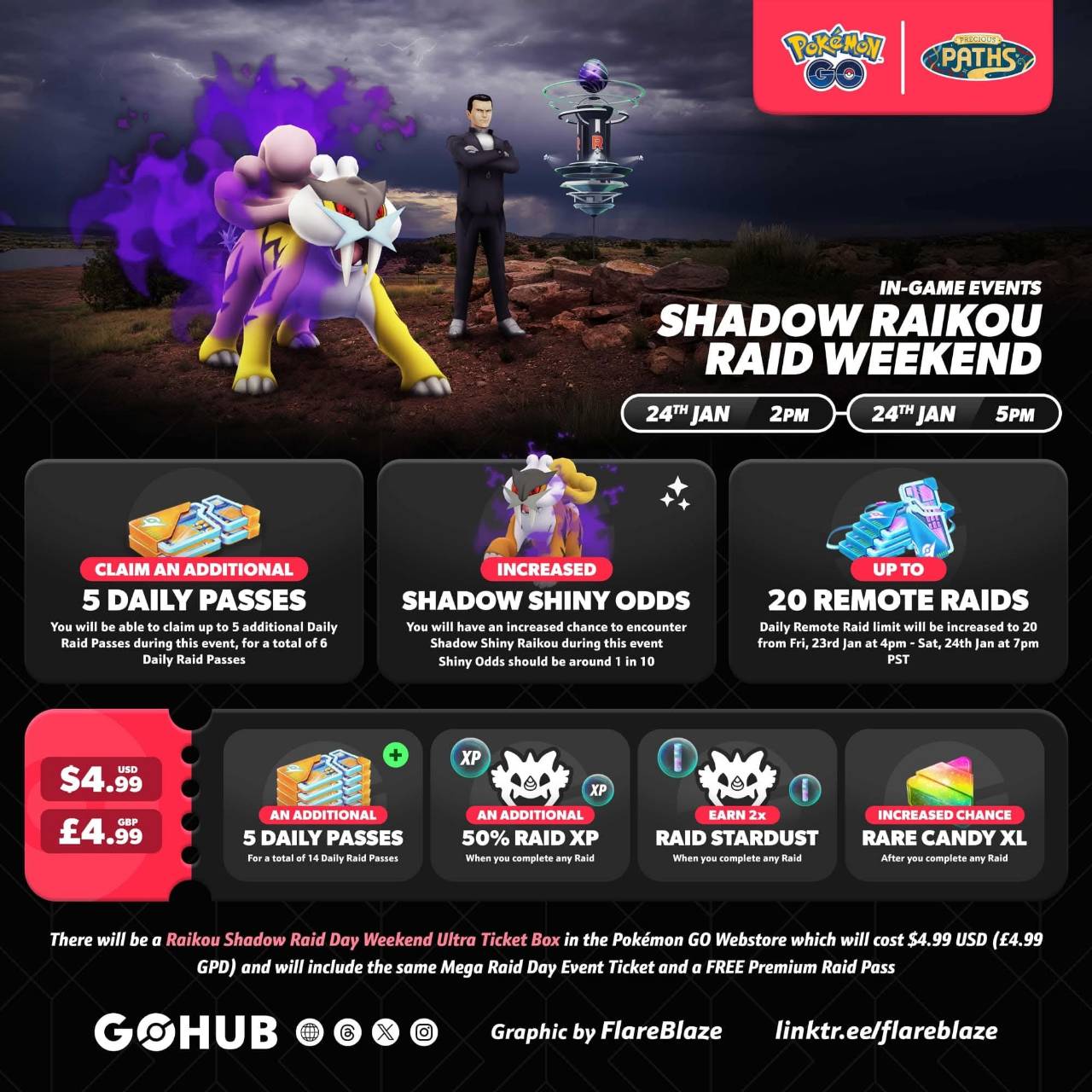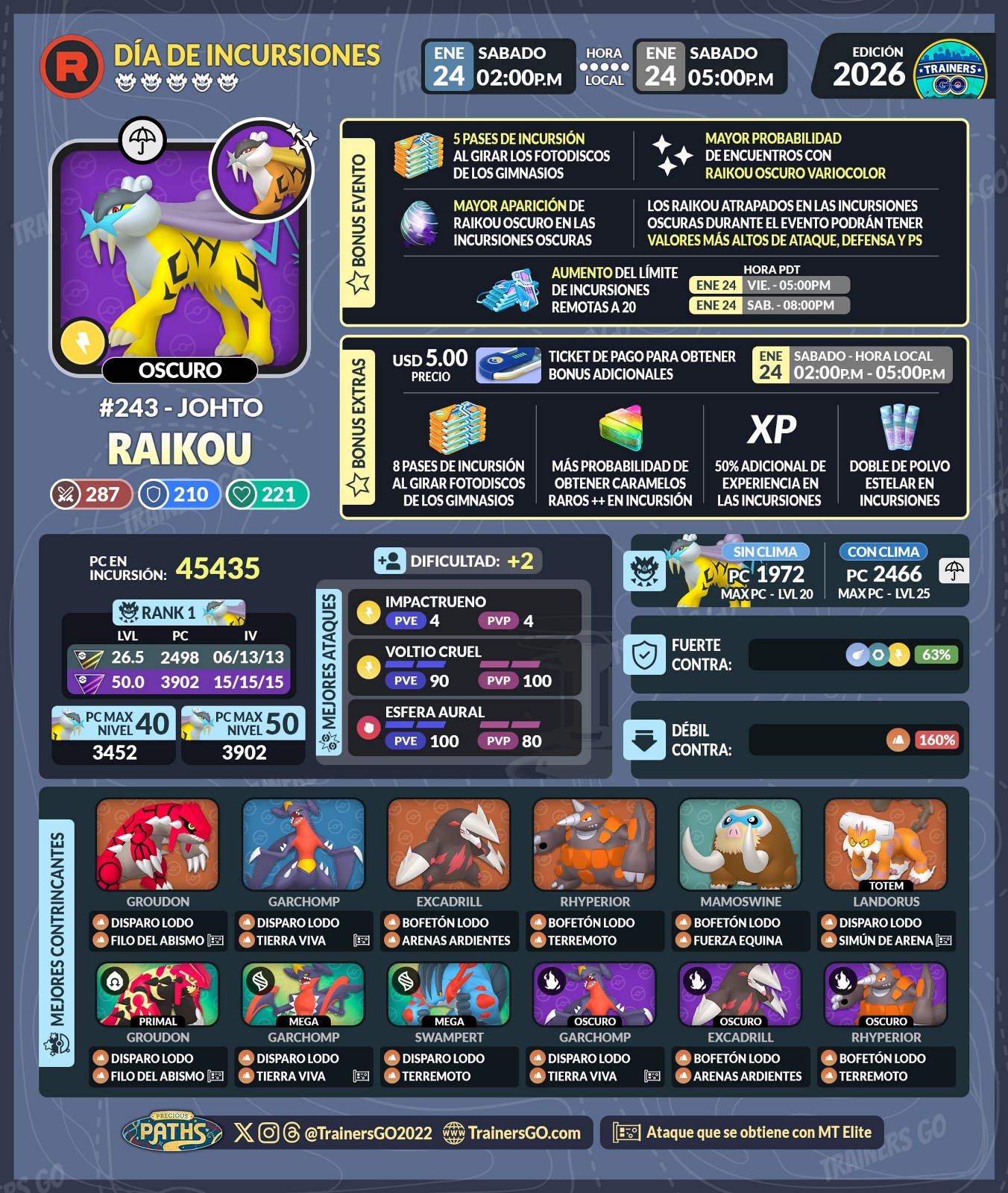 ▪ Mayor probabilidad de encontrar a Raikou Shiny en las Raids oscuras