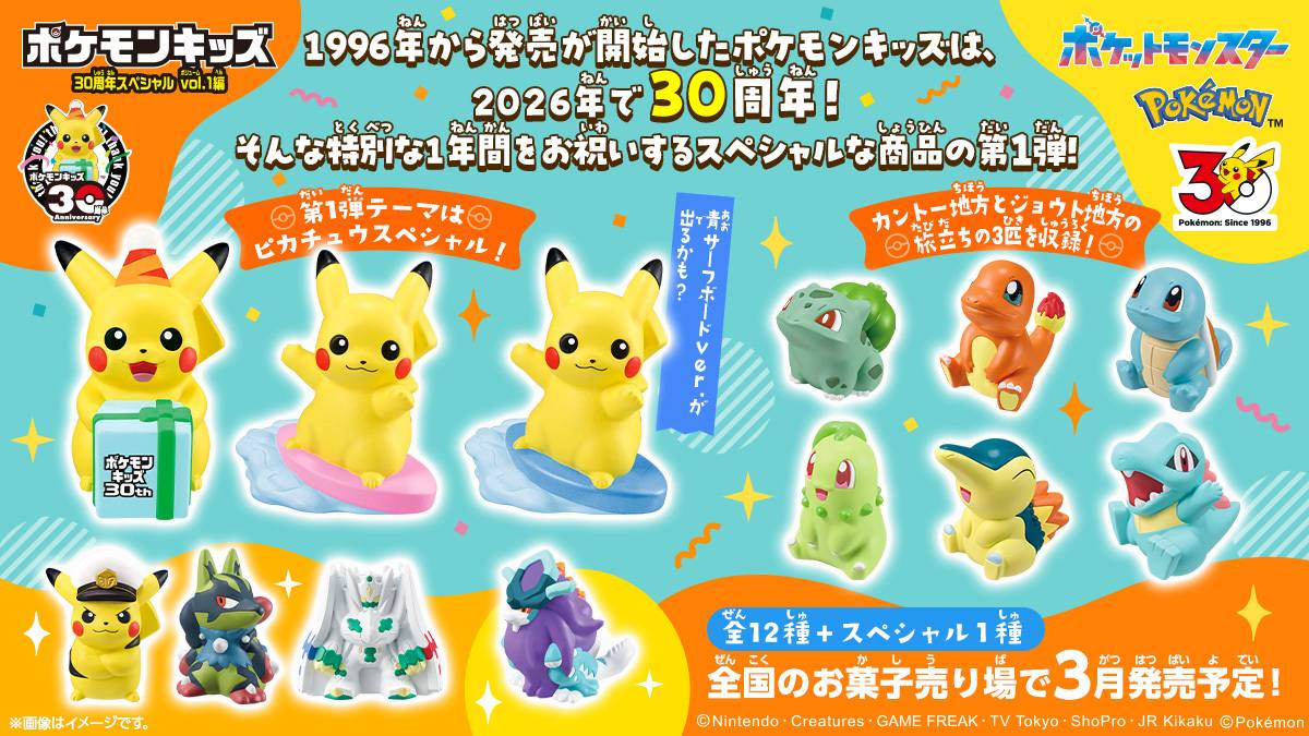 日本萬代(Bandai)食玩部門為了慶祝《寶可夢》系列即將迎來30週年(2026年),提前推出的特別紀念商品。