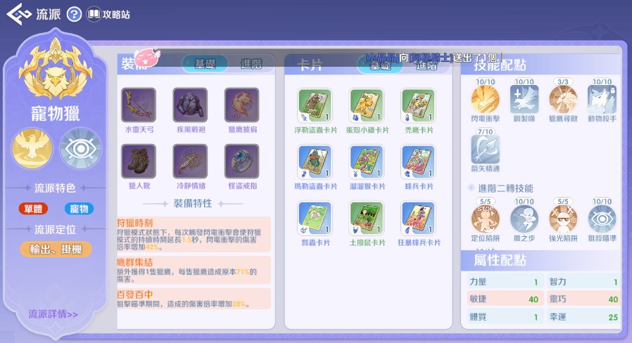 《RO仙境傳說:世界之旅》「鳥獵」 (寵物獵人/ADL) 的完整養成攻略整理。