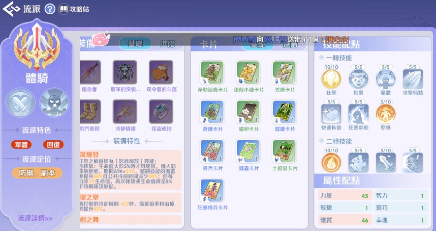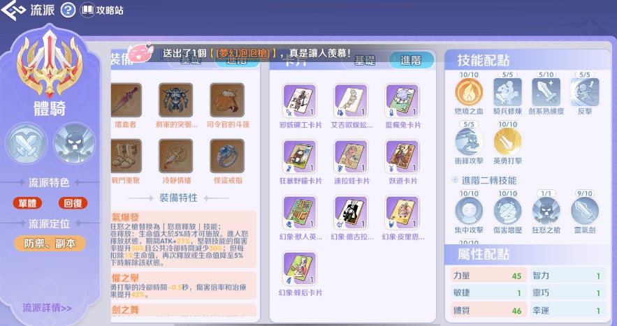 以下為您整理更詳盡的攻略分析,包含屬性配點、技能優先級、裝備建議及卡片搭配: