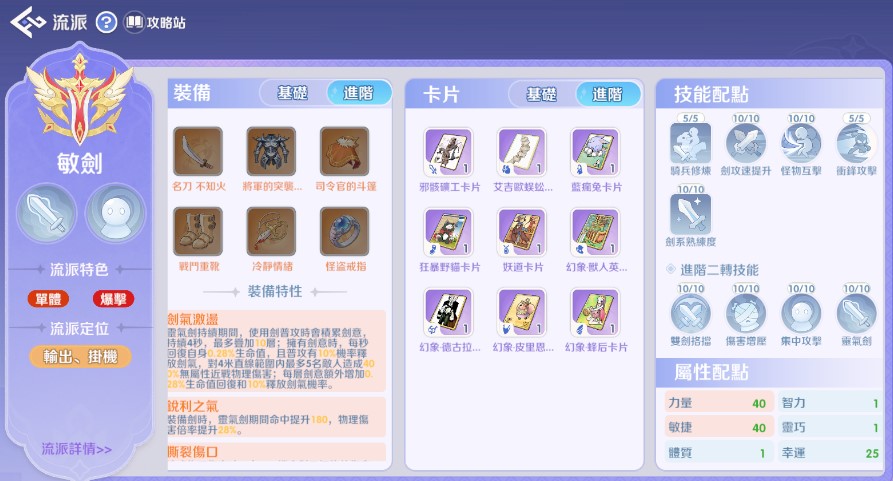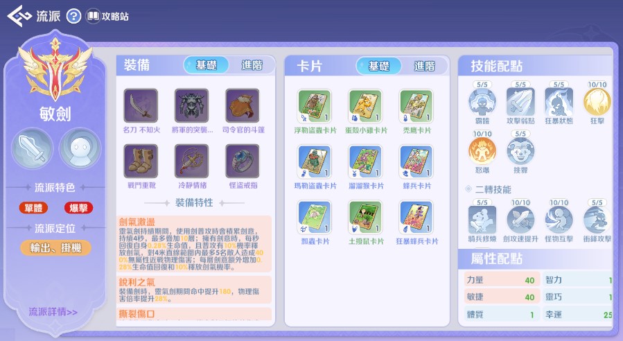 敏爆流的終極目標是**「站樁輸出」**,依靠高攻速觸發特效(如您提到的隕石/流星)來彌補騎士缺乏範圍魔法的短板。