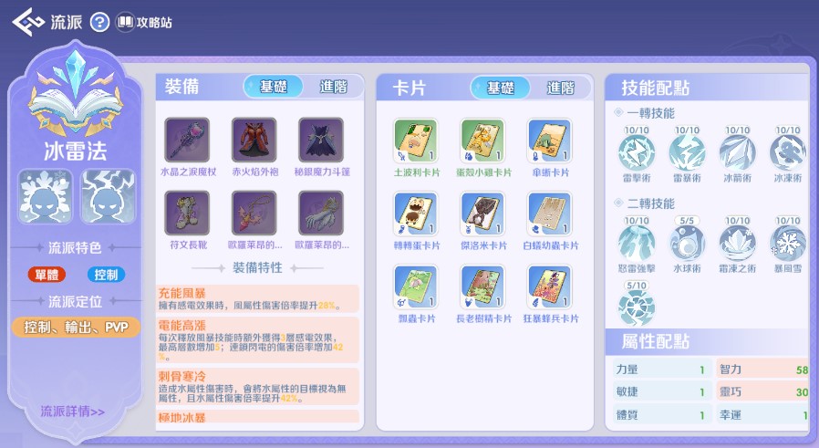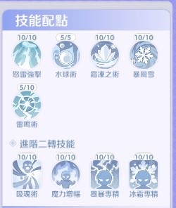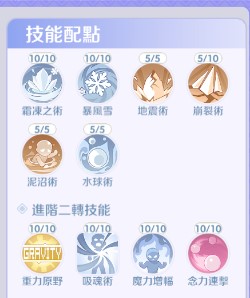 輔助技能: 暴風雪 (控場)、泥沼地 (減速/消狀態) 視情況搭配。