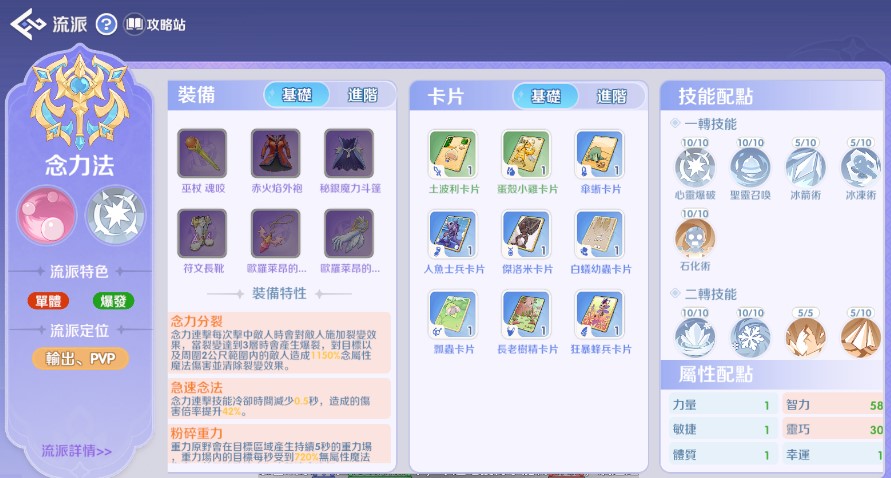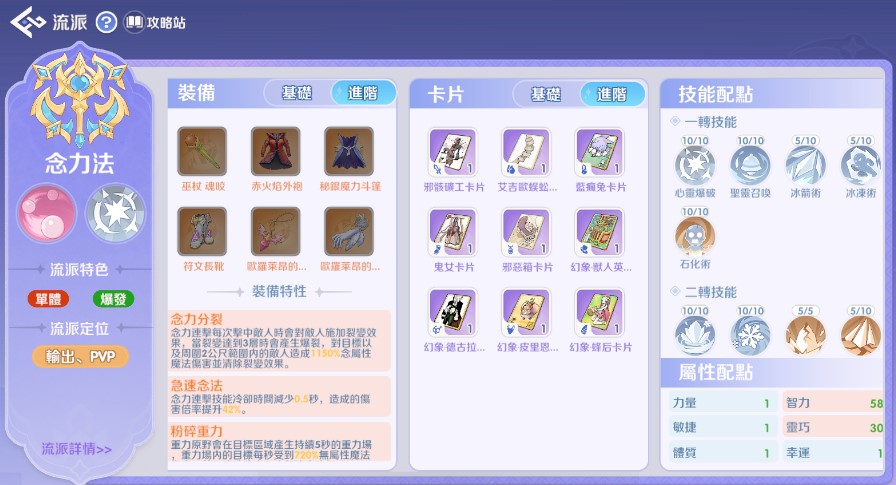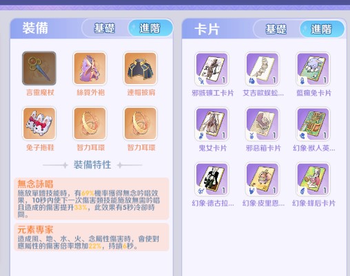 屬性:優先選擇 魔法攻擊力、智力、靈巧 類卡片。