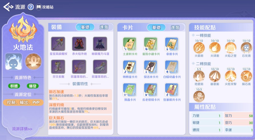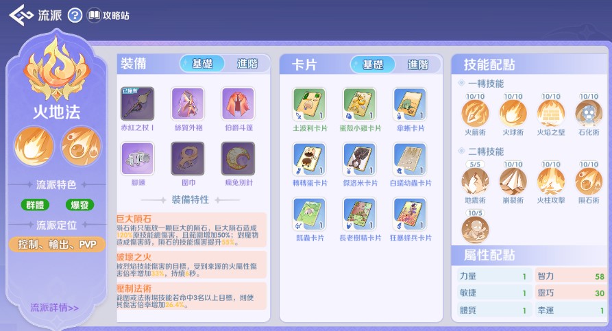 火地法推薦:優先製作 「巨大隕石」,再補 「破壞之火」 提升傷害。