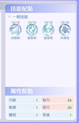 其餘屬性技能先不投資,避免資源分散。