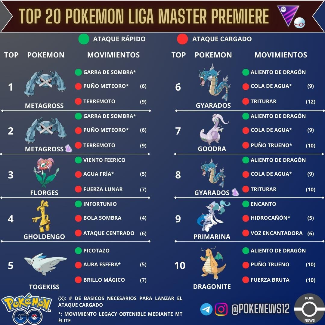 Pokémon GO 大師聯盟紀念盃(Master League Premier) 的前 20 名寶可夢排名與推薦招式分析。