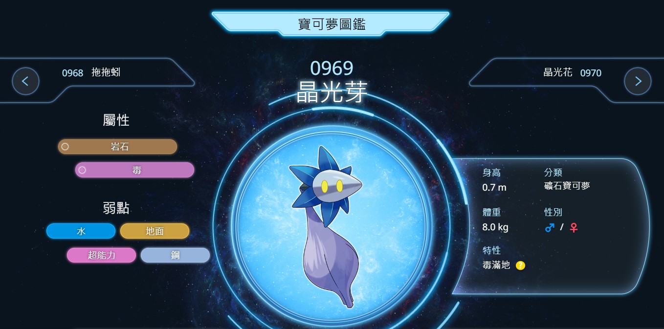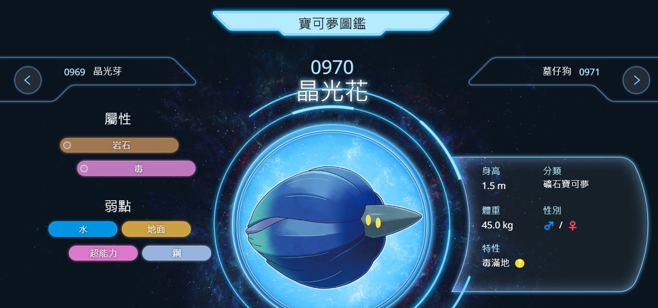 分析:超級聯盟充滿了地面系強權(如沼王、鯰魚王、土王、天蠍),晶光花的「雙重弱地」體質會讓牠生存極其困難。除非隊伍能完美鎖死對手的地面系,否則很難發揮。