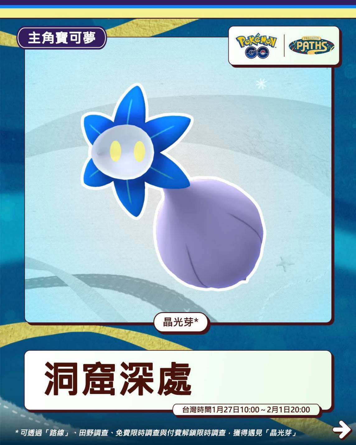 01/27 洞窟深處活動 晶光芽&晶光花初登場 田野調查獎勵任務 Pokemon GO 2026
