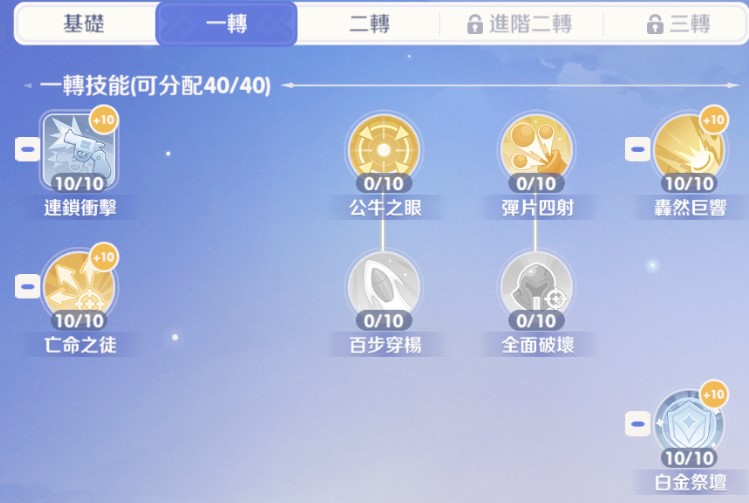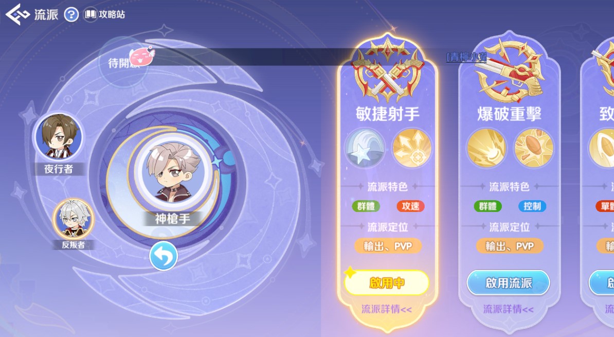 建議先以 「手槍」 或 「格林」 起手。因為這兩個流派靠普攻,掛機效率高,練功升級比較舒服。