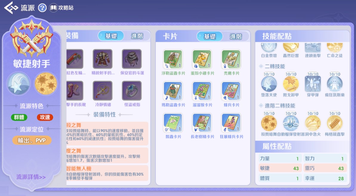 神槍手 反叛者 夜行者 裝備配點 技能參考 寵物與卡片推薦@ RO世界之旅