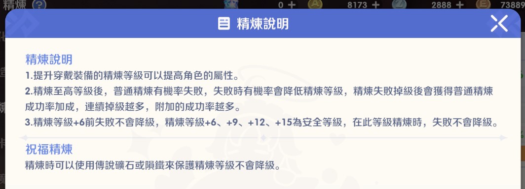策略: 在過渡期使用低等裝備墊檔時,要小心不要衝過頭,否則未來想把等級「降轉」回低等裝備(例如練分身或特定用途)時會卡住;或者反過來,想把高等級精煉轉給低階過渡裝時也會受阻。
