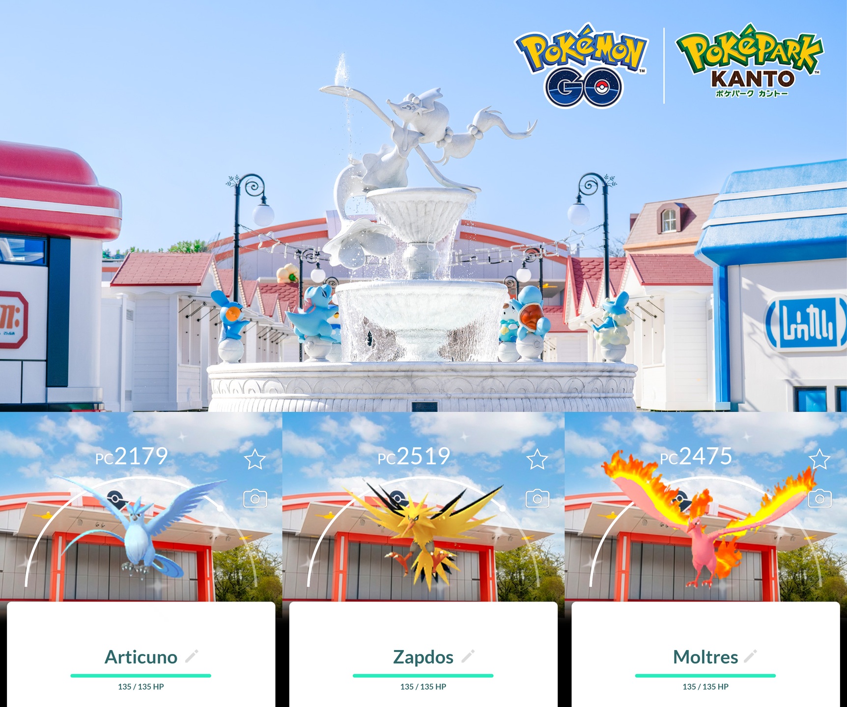 ▶ Articuno, Zapdos y Moltres rotarán cada cuatro meses y aparecerán con un fondo de locación de PokéPark KANTO.