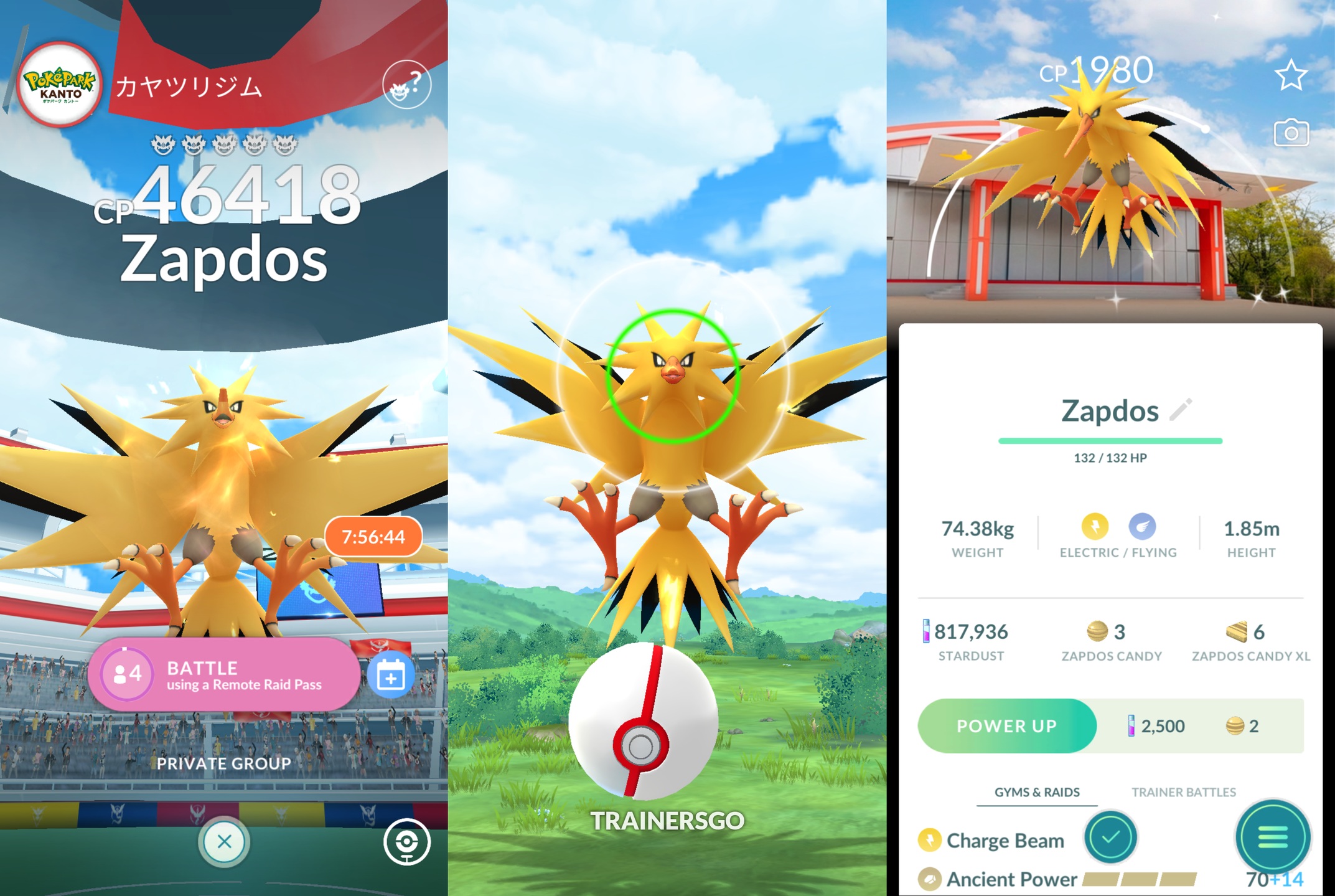 ▶ Recuerden que solo hay un gimnasio donde aparecen incursiones de Zapdos