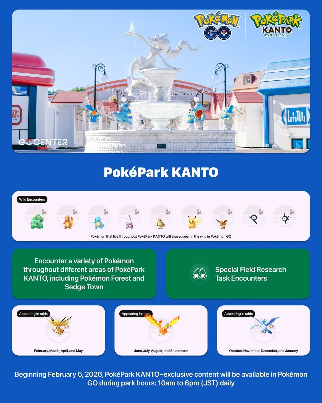Pokémon GO 在社群媒體上宣佈,位於日本的 PokéPark Kanto 將於 2026 年 2 月 5 日正式開幕,並在遊戲內推出特別主題活動。