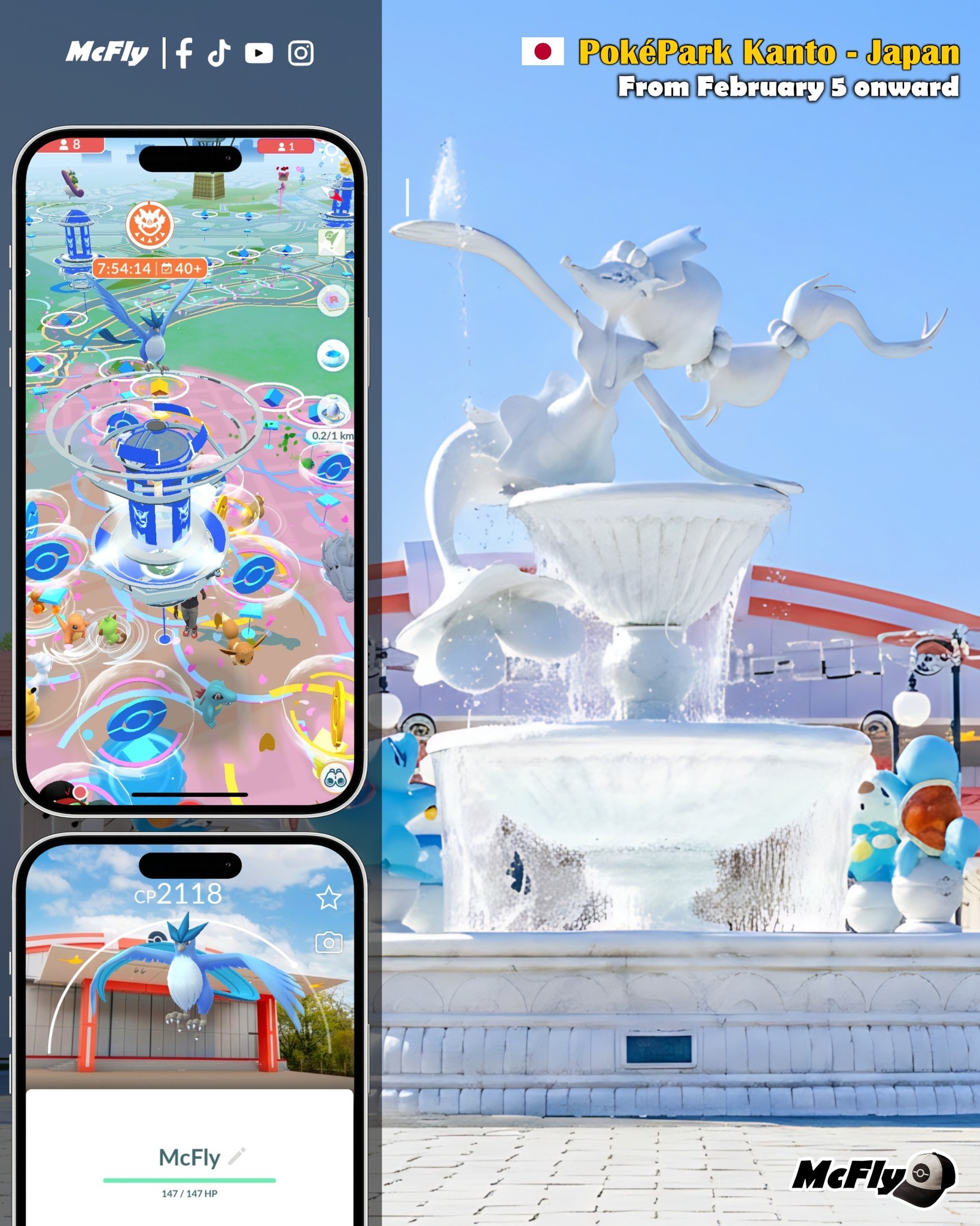 ➡️ Evento especial en el parque temático Yomiuri Land en Japón 🇯🇵. Este Articuno tiene un fondo temático del parque, representando una aparición limitada y exclusiva (No se puede invitar a Incursiones. Toca ir modo fly ✈️)