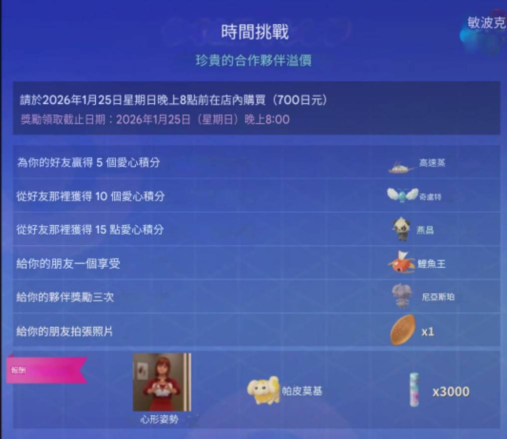 01/20 新增田野任務 付費特殊調查任務 收藏家挑戰 Pokemon GO 2026