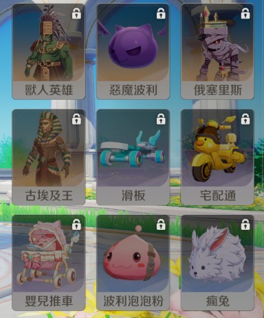 惡魔波利、俄塞里斯、古埃及王、滑板、宅配通、嬰兒推車、波利泡泡粉、
