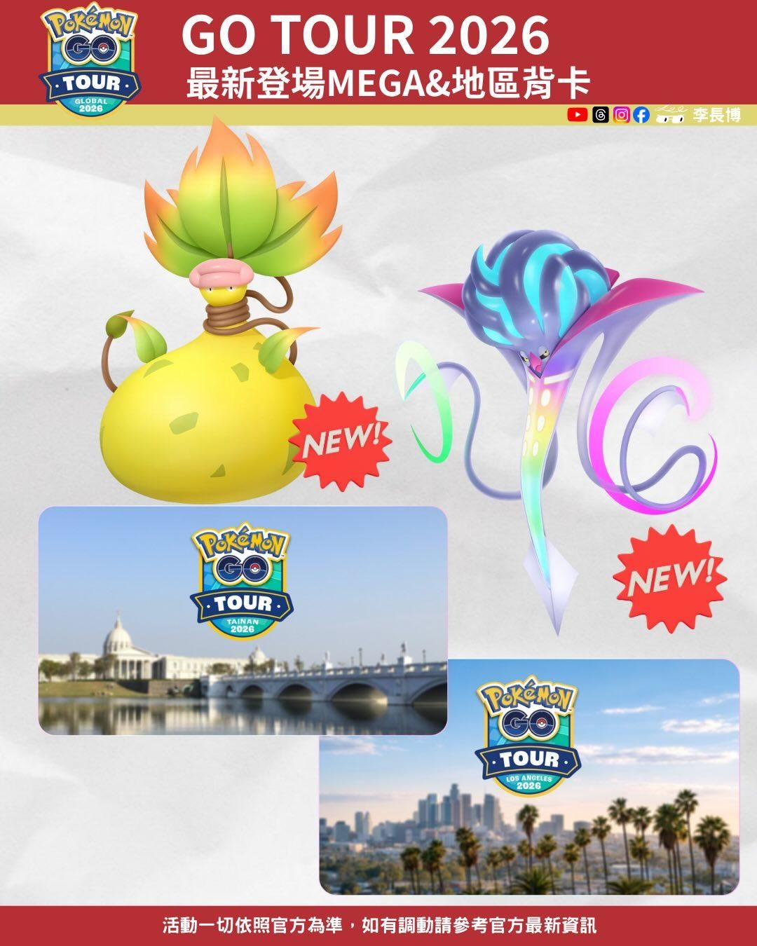 下一步建議: 您提到 2026 年 2 月要去台南參加 Pokémon GO Tour,這兩隻極有可能會是活動限定的 Mega 團體戰主角。建議您現在可以先整理背包裡的高 IV 喇叭芽和好啦魷,特別是好啦魷需要「倒轉手機」進化,您可以先準備好幾隻進化完成的烏賊王等待活動開啟 Mega 進化功能。