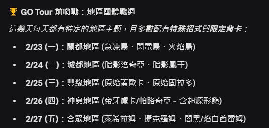 GO Tour 前哨戰:地區團體戰週