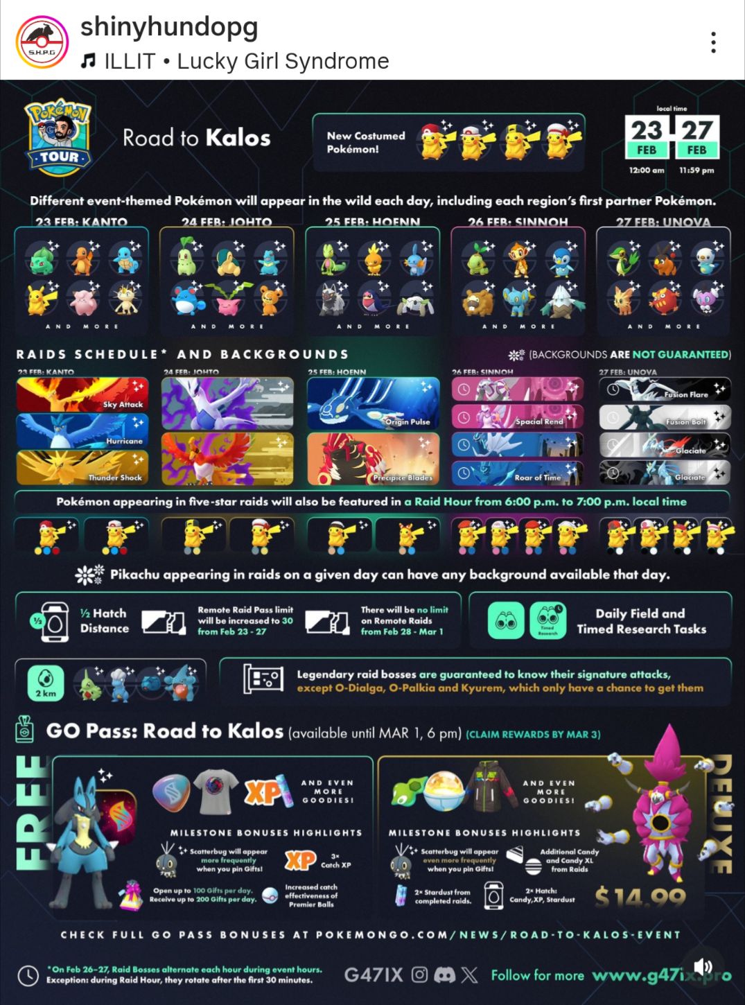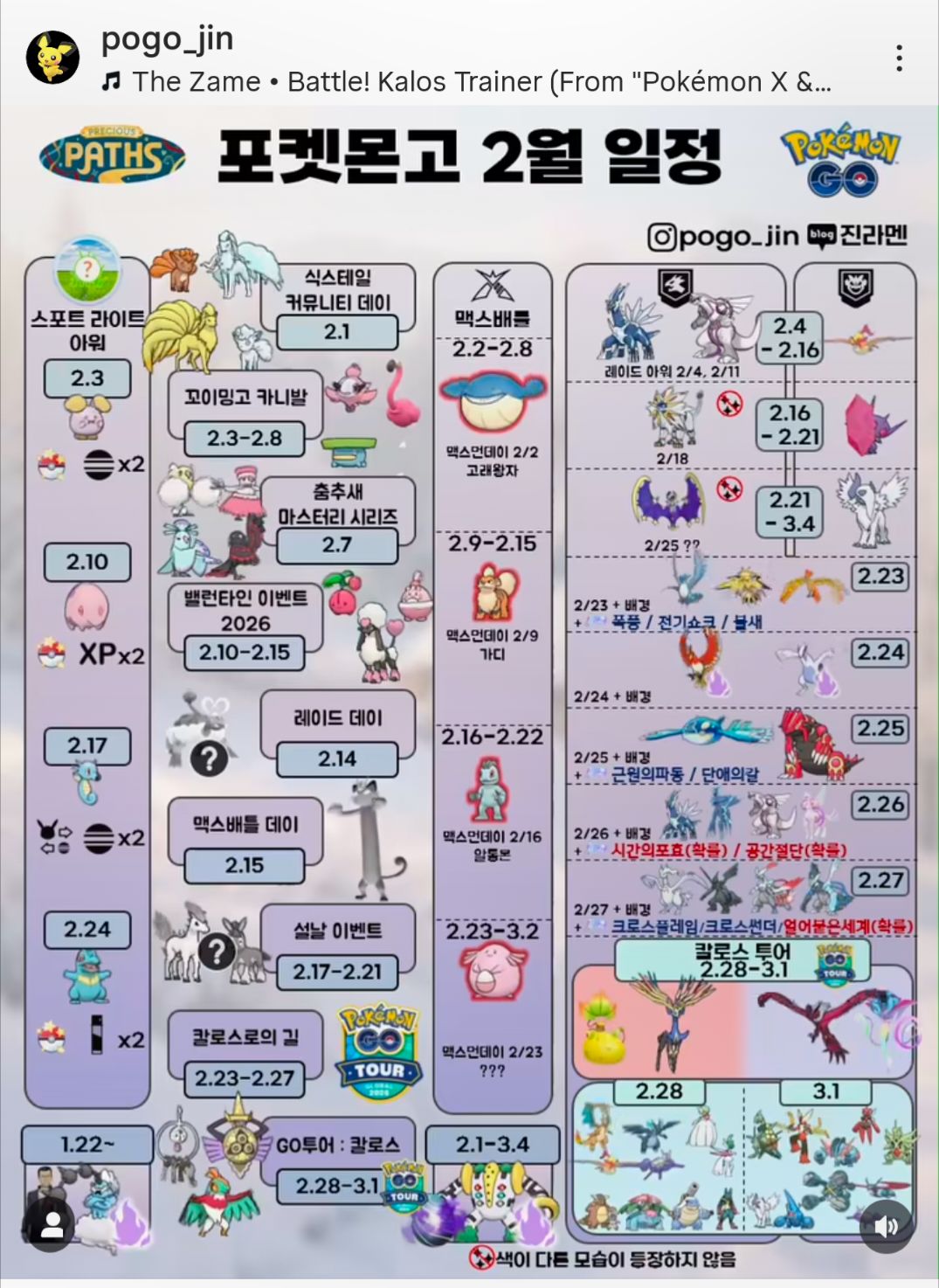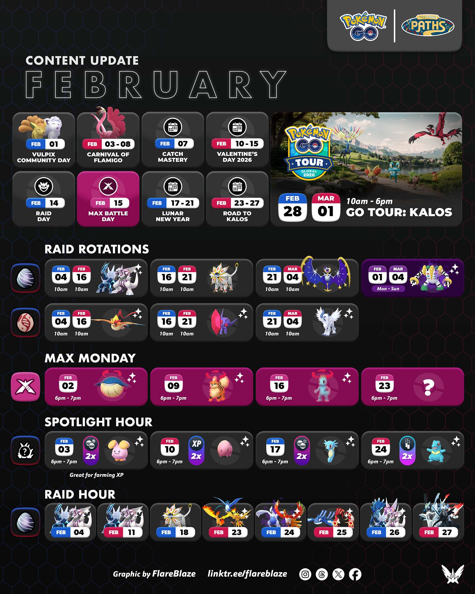 | 2/28 – 3/1 | Pokémon GO Tour:卡洛斯 – 全球 |